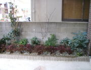 5本のヒバを枯れ枝抜きをして、刈込を行いました。 足元には新たにサツキを8本植付けして他の場所からヒイラギを移植いたしました。 |