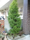ゴールドクレストは根が浅い為、強風等で倒れない様に杭を打ち固定しました。 |
